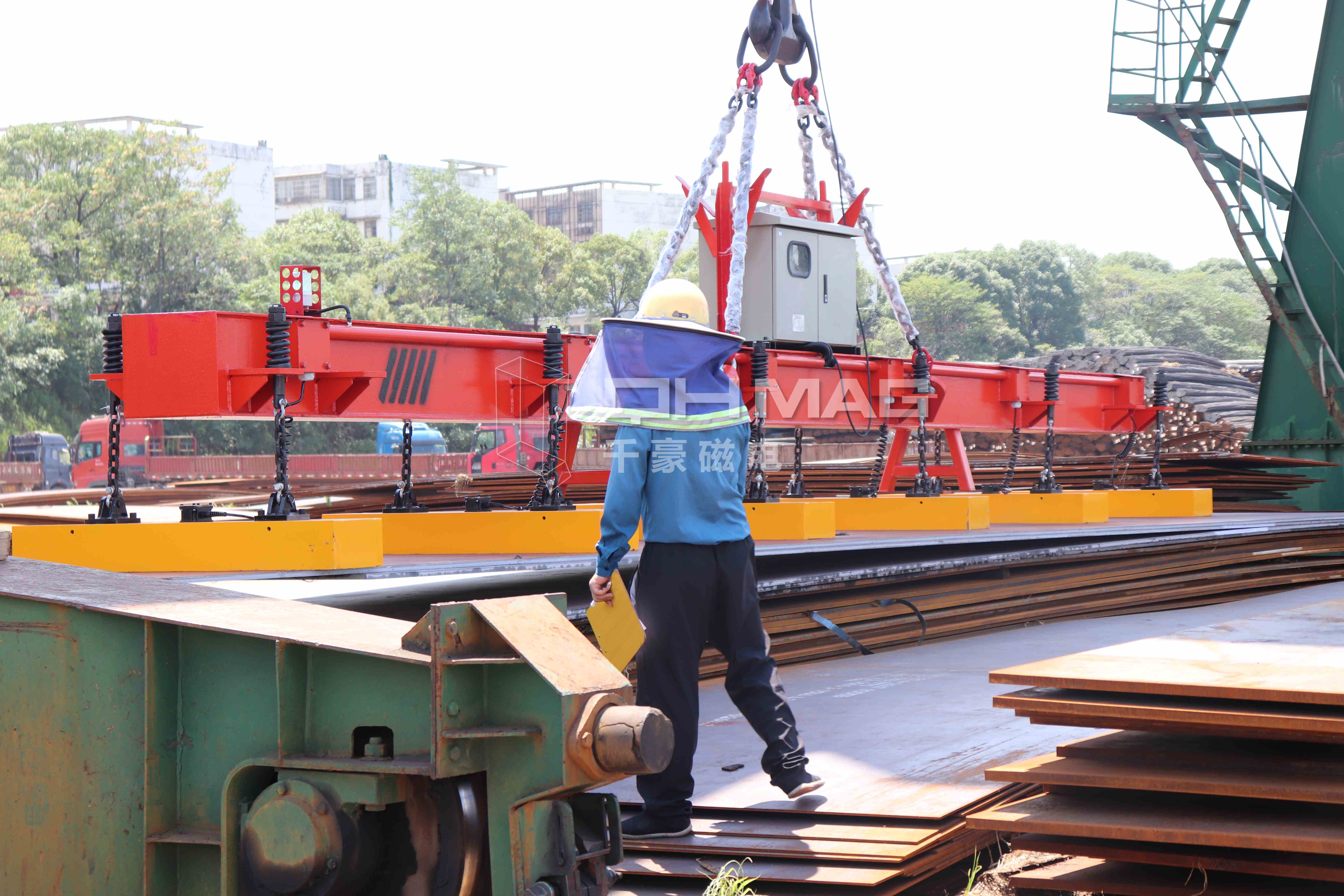 千豪磁電鋼板電永磁吊具,以其高效、安全、靈活的操作流程,為鋼板卸貨作業帶來全新體驗。